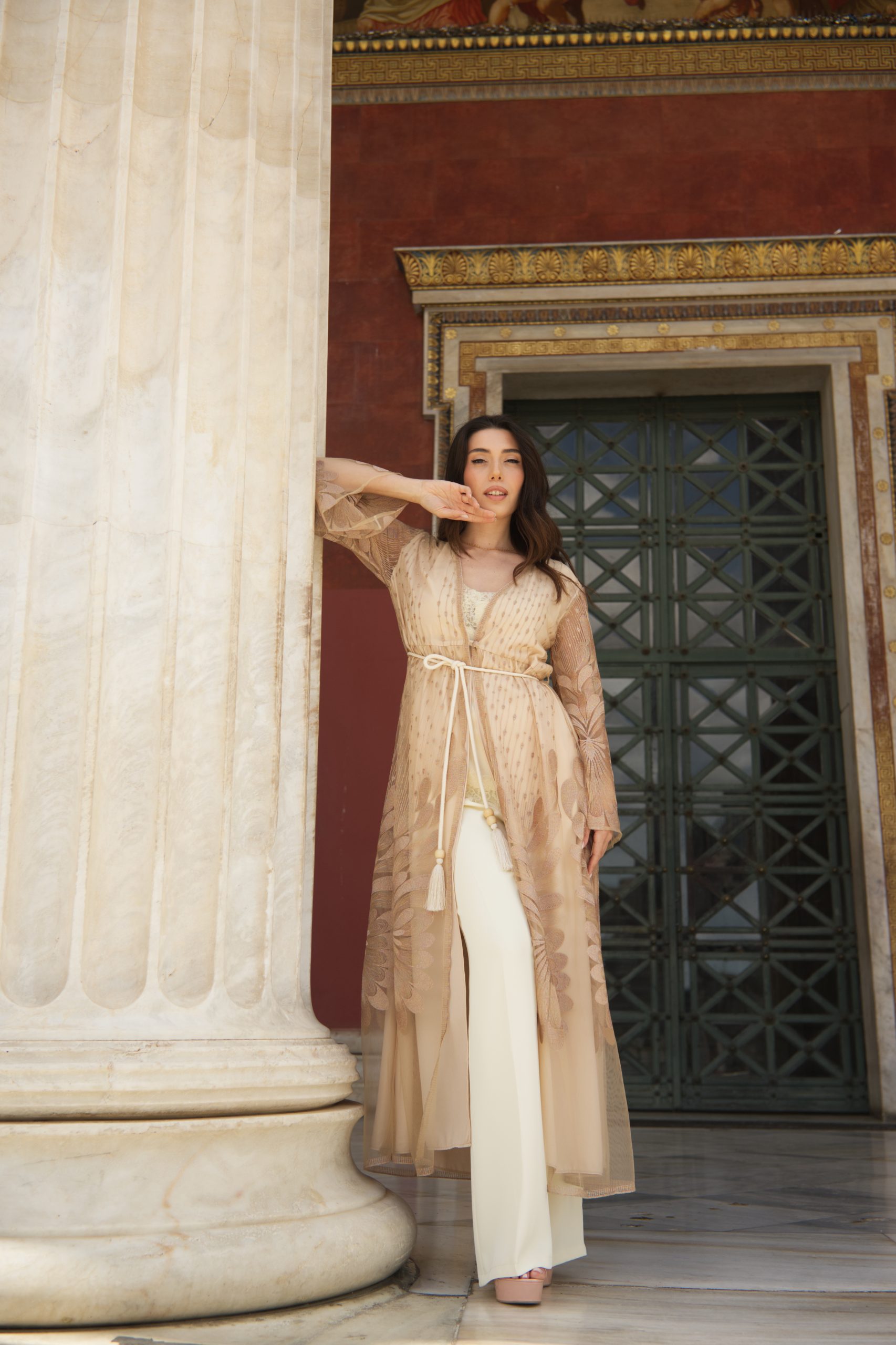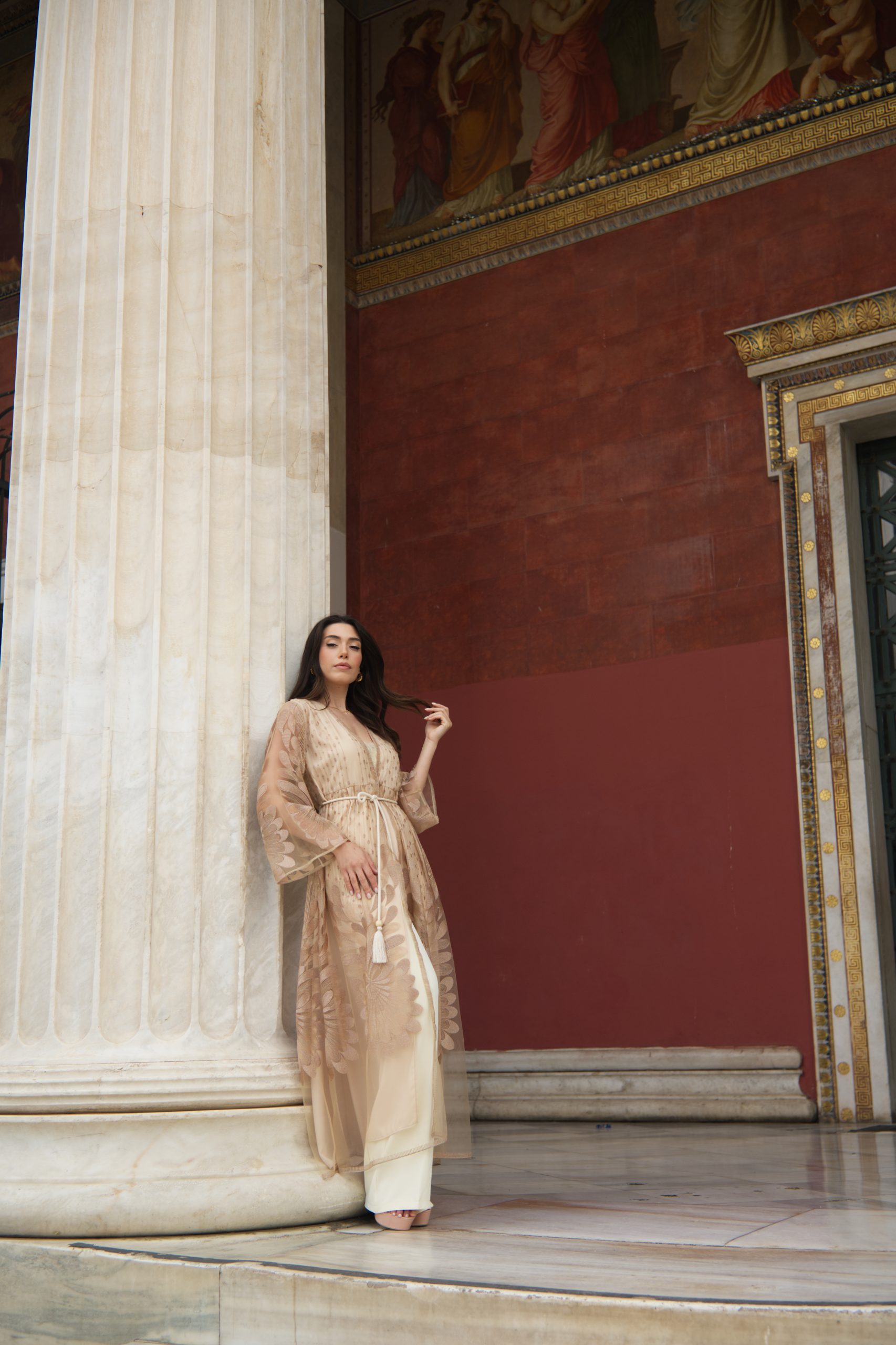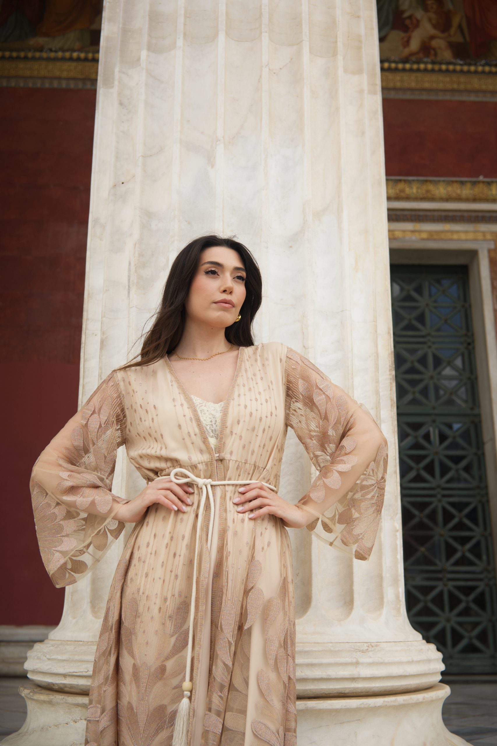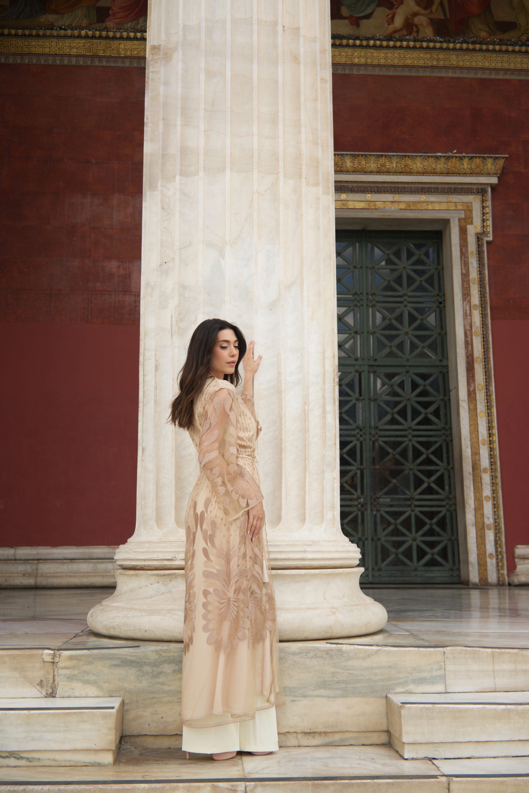 • Ύφασμα χρυσή δαντέλα κεντημένη